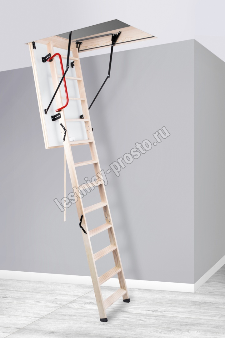 Модель EXTRA идеальна для условий, когда чердак плохо утеплен и требует дополнительной теплоизоляции. По контуру короба одинарный уплотнитель. Лестница имеет нескользящие ножки, которые идеально прилегают к земле, предотвращают появление царапин на поверхности пола и придают эстетичный вид после ее резки. 4-х секционная складная чердачная лестница. Высота потолка до 3350 мм.