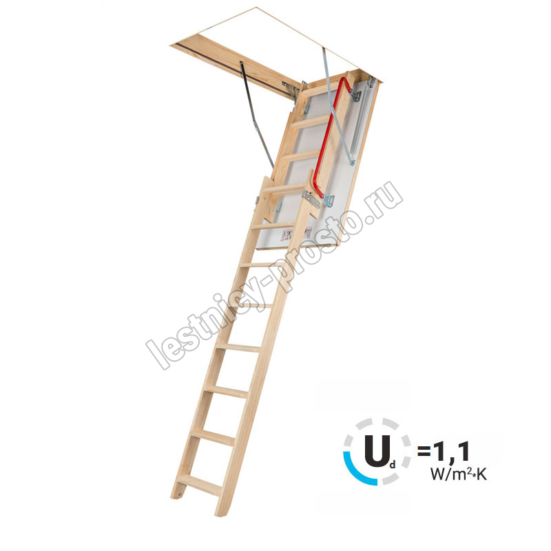 Двухсекционная раздвижная чердачная лестница LDK предназначена для помещений, где недостаточно места для складных лестниц. Данная модель также хорошо сохраняет тепло (толщина крышки с утеплителем – 36 мм), проста, удобна и безопасна в использовании, как и лестницы Smart и Komfort, но в тоже время позволяет максимально экономить драгоценное свободное пространство в доме. Крышка люка облицована ДВП белого цвета, что делает ее практически незаметной при установке в светлом или белом потолке. Для большего удобства и безопасности эксплуатации лестница LDK оснащена боковым металлическим поручнем и противоскользящими выемками на ступенях.
