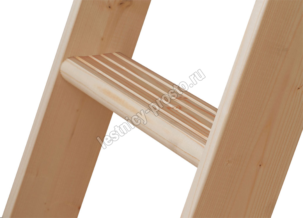 Четырехсекционная складная лестница из ели. Высота лестницы от потолка до пола: 2870 мм, с помощью дополнительной секции можно увеличить высоту до 3300 мм