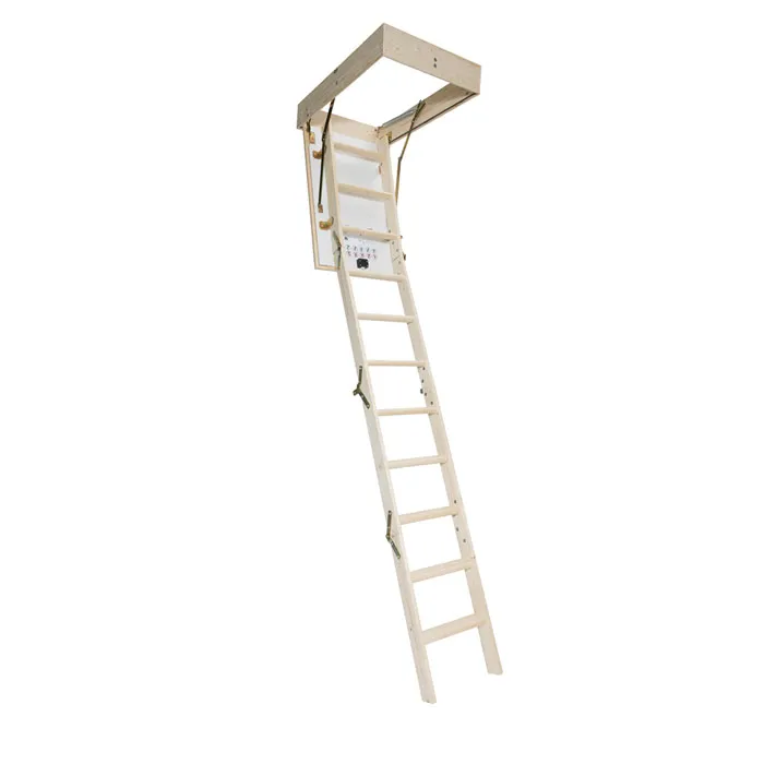 В комплекте: люк из сэндвич-панели, пружинный механизм "короб-рычаг", короб, четырехсекционная лестница с буковыми ступенями, замок люка, штанга для раскладывания лестницы, наконечники для ножек