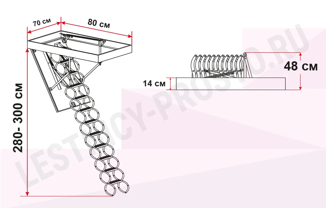 Чердачная термоизоляционная ножничная лестница FAKRO LSF 70×80 см, h-300 см