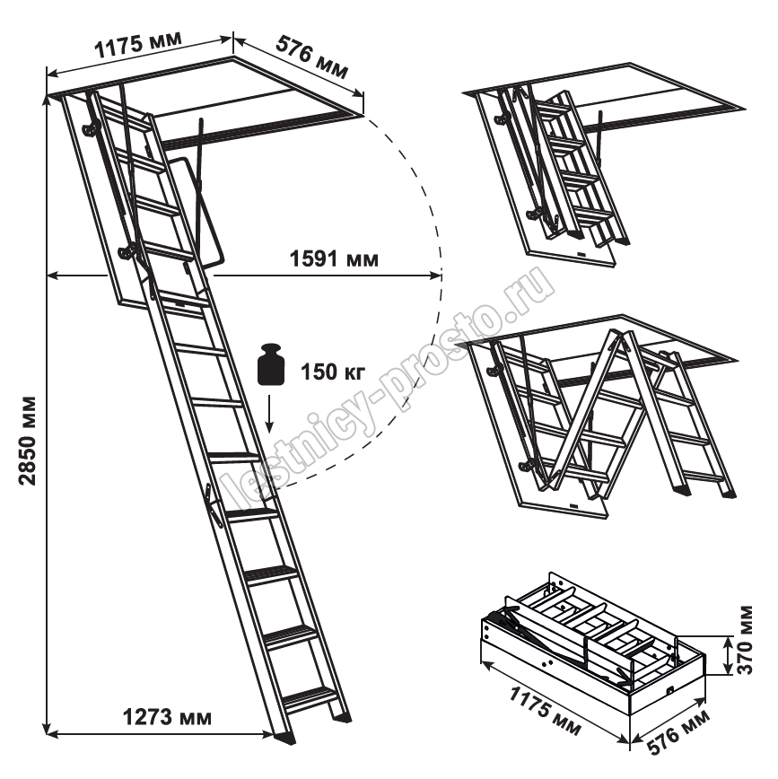 Лестница выдерживает нагрузку до 150 кг, при этом сама она легкая - ее просто складывать и раскладывать одним касанием руки. Несмотря на простоту, она оснащена поворотным замком, надежно фиксирующим люк в закрытом состоянии.