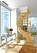 Удобная поворотная лестница на второй этаж. Дополнительные ограждения по первому маршу обеспечивают безопасность при подъеме и спуске, кроме того, небольшой угол подъема открывает всю площадь ступеней. Монтаж осуществляется силами двух человек на объекте по указаниям, приведенным в паспорте на лестницу.