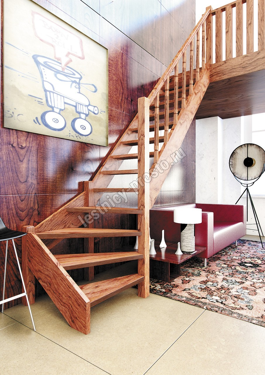 Деревянная межэтажная лестница ЛЕС-07 2880-3085 проем 2550-830, Бук