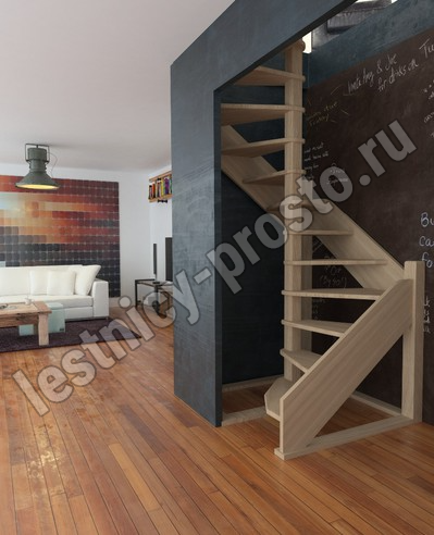 Деревянная межэтажная лестница ЛЕС-1,2ВУ, Лиственница