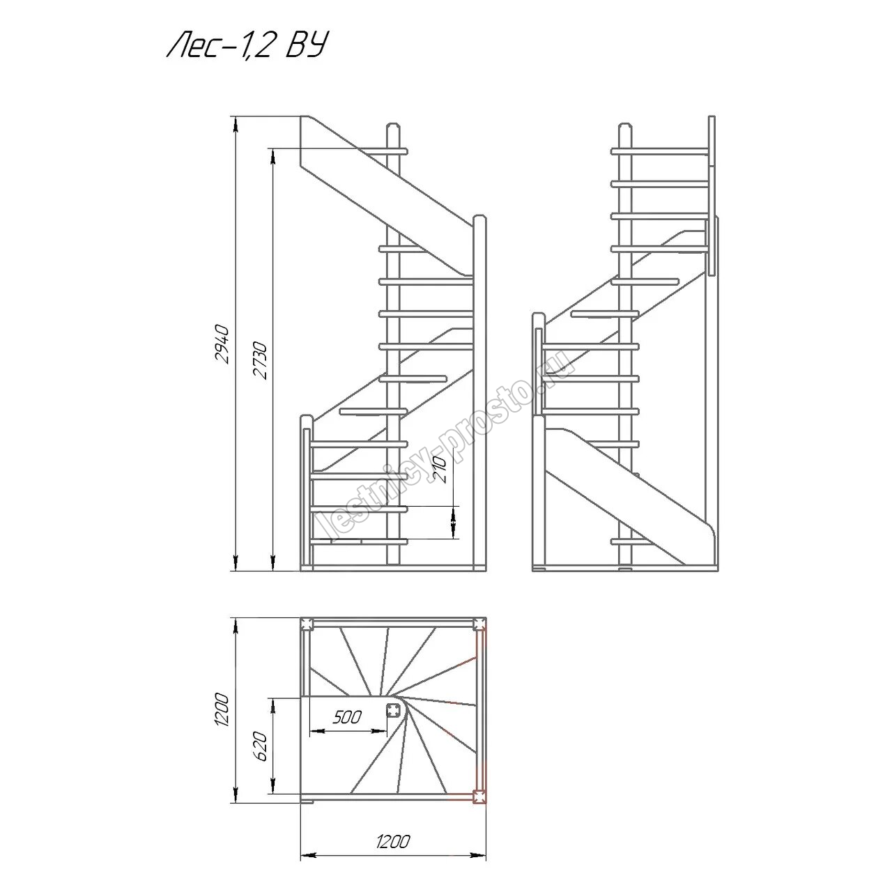 Деревянная межэтажная лестница ЛЕС-1,2ВУ, Сосна