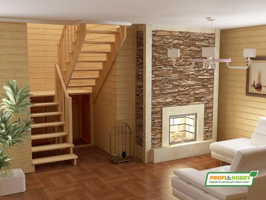 Деревянная межэтажная лестница ЛЕС-215, Сосна