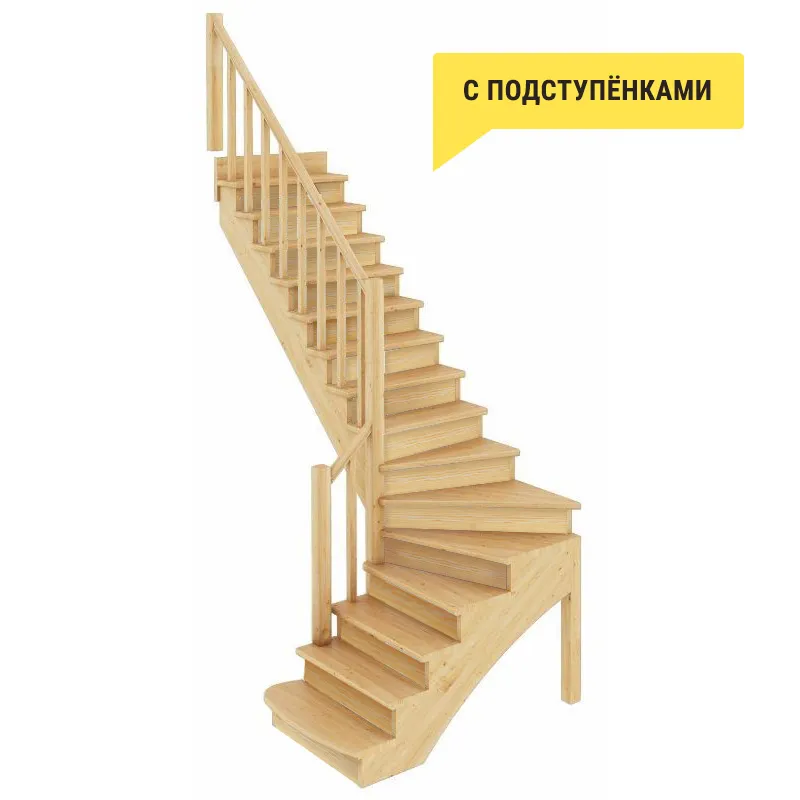 Базовый комплект включает в себя деревянные элементы лестницы без какого-либо покрытия. Лестница поставляется в разобранном виде.