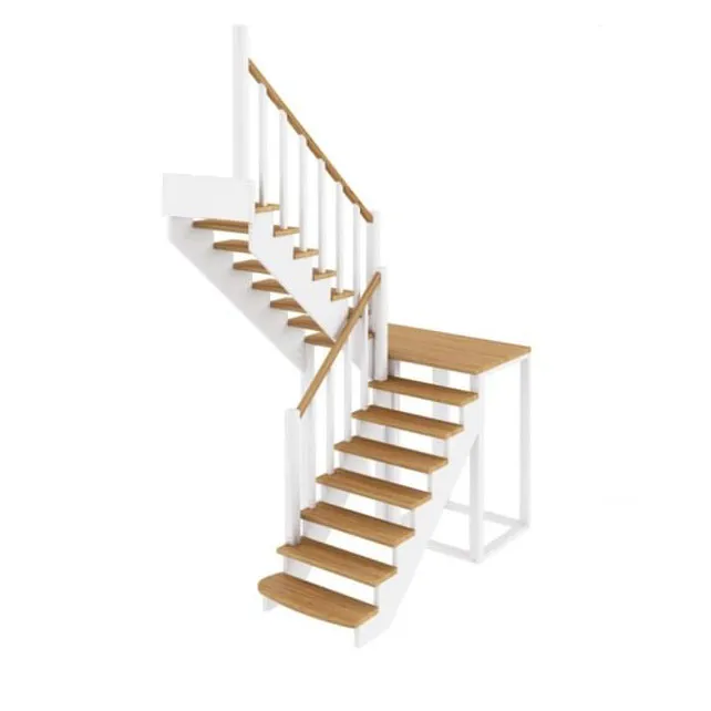Ступени и поручень лестницы изготовлены из сращенного бука; тетивы, столбы, балясины - из сосны. Возможно изготовление данной модели полностью из бука. Базовый комплект включает в себя деревянные элементы лестницы и ограждения без какого-либо покрытия.