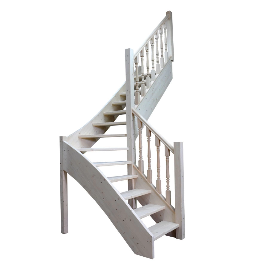Базовый комплект включает в себя деревянные элементы лестницы и ограждения без какого-либо покрытия. Стандартное ограждение можно заменить любым на ваш вкус (стоимость может измениться).