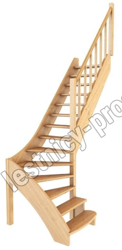 Ступени и поручень лестницы изготовлены из бука, остальные элементы из сосны. Возможно изготовление данной модели полностью из бука. Базовый комплект включает в себя деревянные элементы лестницы и ограждения без какого-либо покрытия.