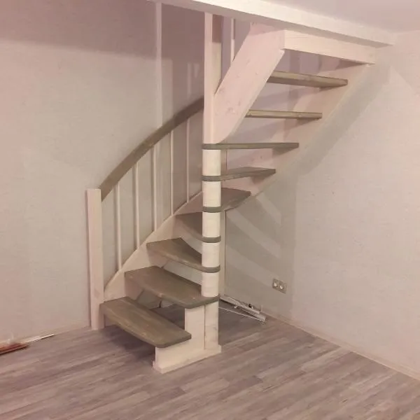 Ступени и поручень лестницы изготовлены из бука, остальные элементы из сосны.