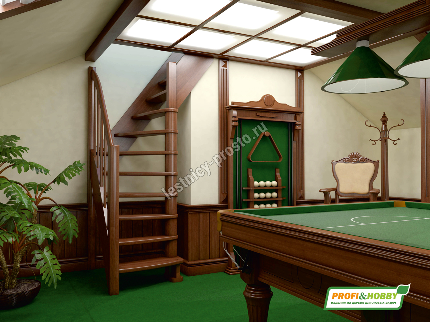 Ступени и поручень лестницы изготовлены из бука, остальные элементы из сосны.