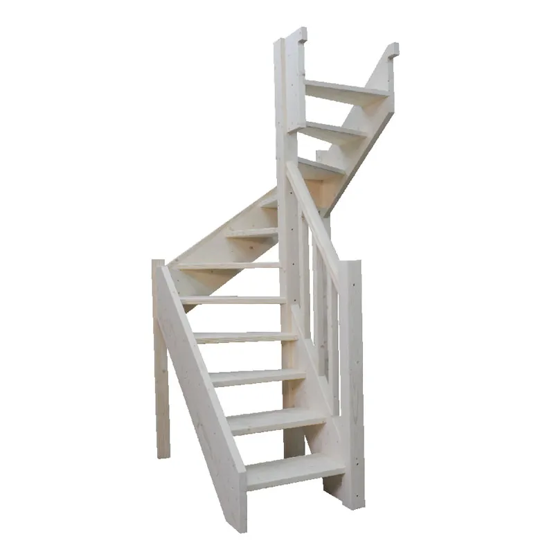 Базовый комплект включает в себя деревянные элементы лестницы и ограждения без какого-либо покрытия.
