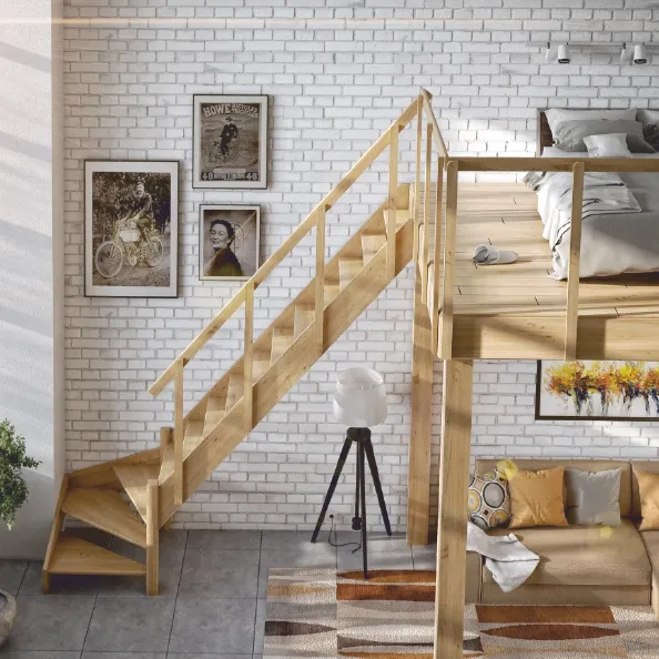 Ступени и поручень лестницы изготовлены из дуба, остальные элементы из сосны.