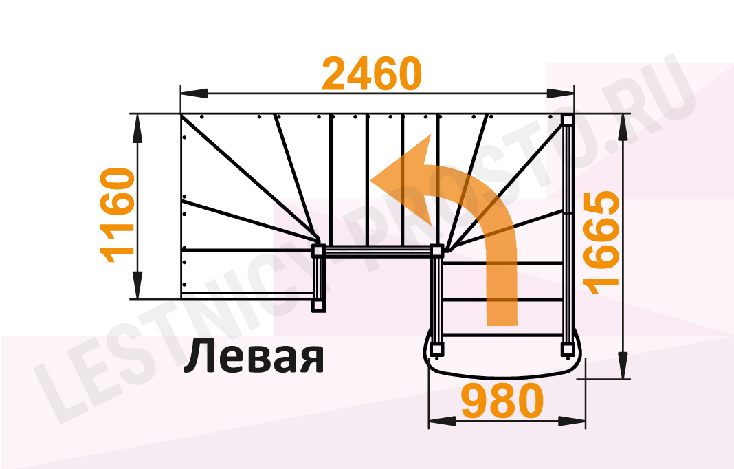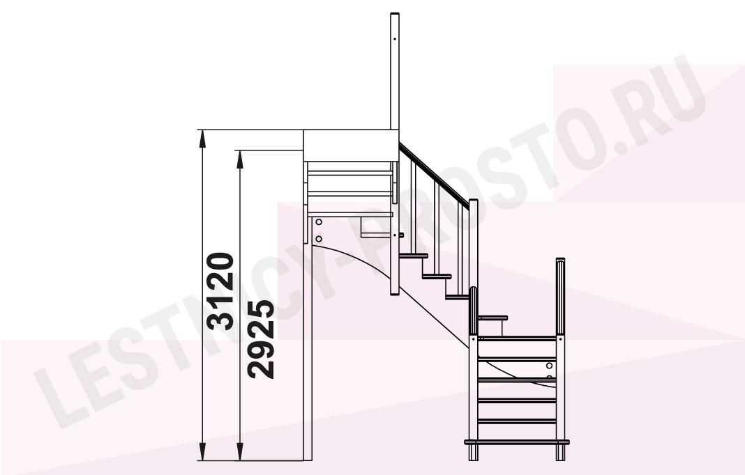 Схема лестницы К-009М/2 с повооротом налево