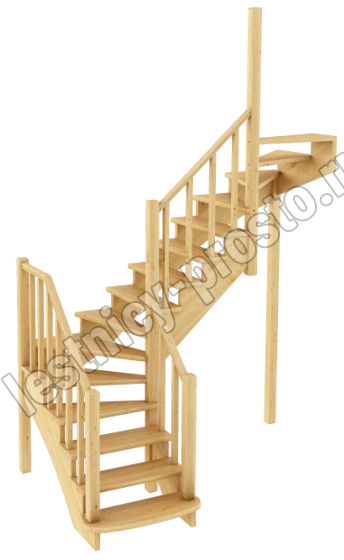 Ступени и поручень лестницы выполнены из дуба, остальные элементы из сосны.
