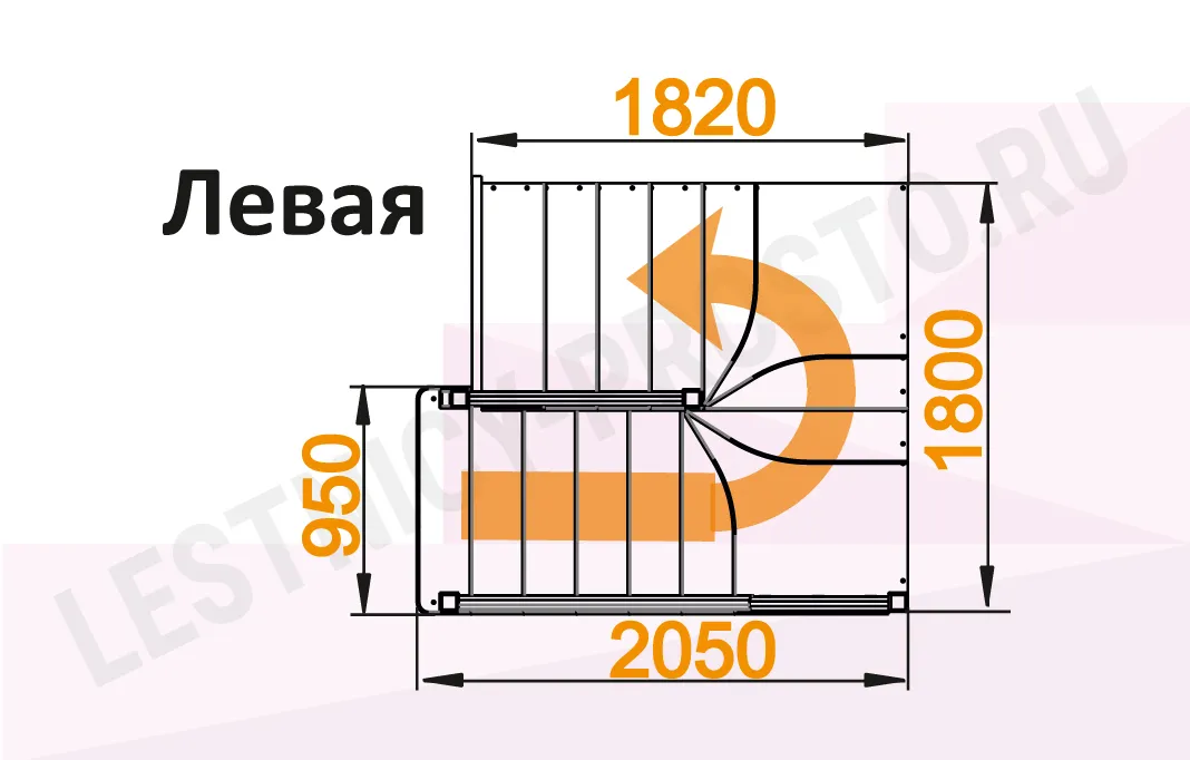 Ограждение у лестницы с обеих сторон (снизу до поворотной площадки)