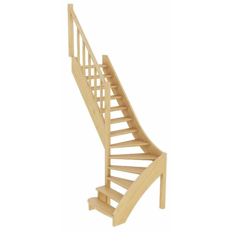 Базовый комплект включает в себя деревянные элементы лестницы и ограждения без какого-либо покрытия.