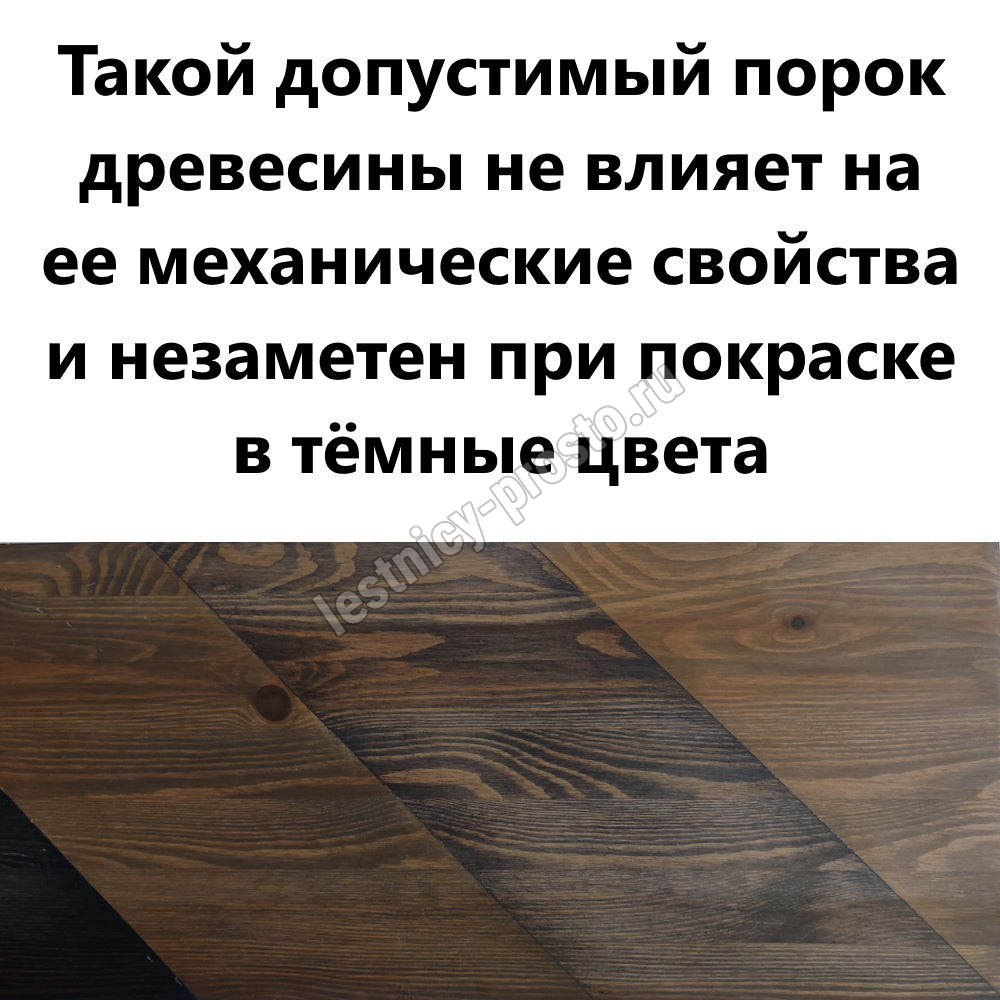 Обратите внимание! Данный вариант лестницы изготовлен из сосны эконом-класса - это сосна с заметными местами синевы, такая особенность никак не отражается на прочности и надежности лестницы, но может быть заметна при прозрачном покрытии или покраске лестницы в светлые тона.