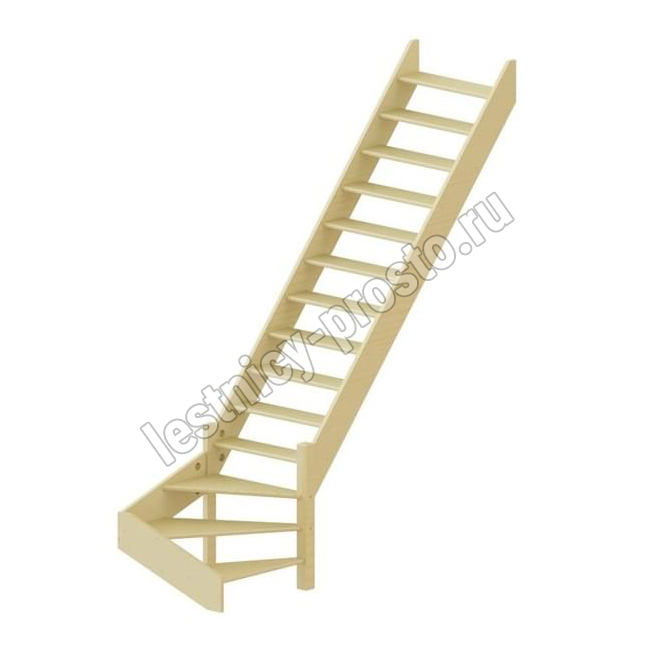 Базовый комплект включает в себя деревянные элементы лестницы без какого-либо покрытия.