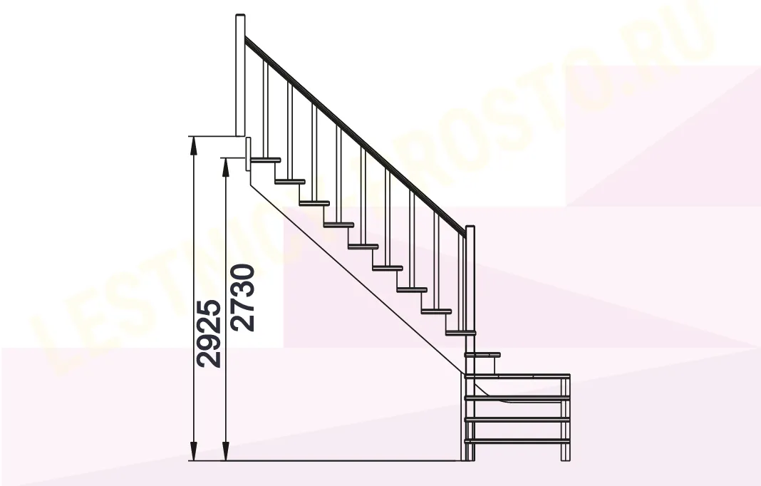 Базовый комплект включает в себя деревянные элементы лестницы и ограждения без какого-либо покрытия.