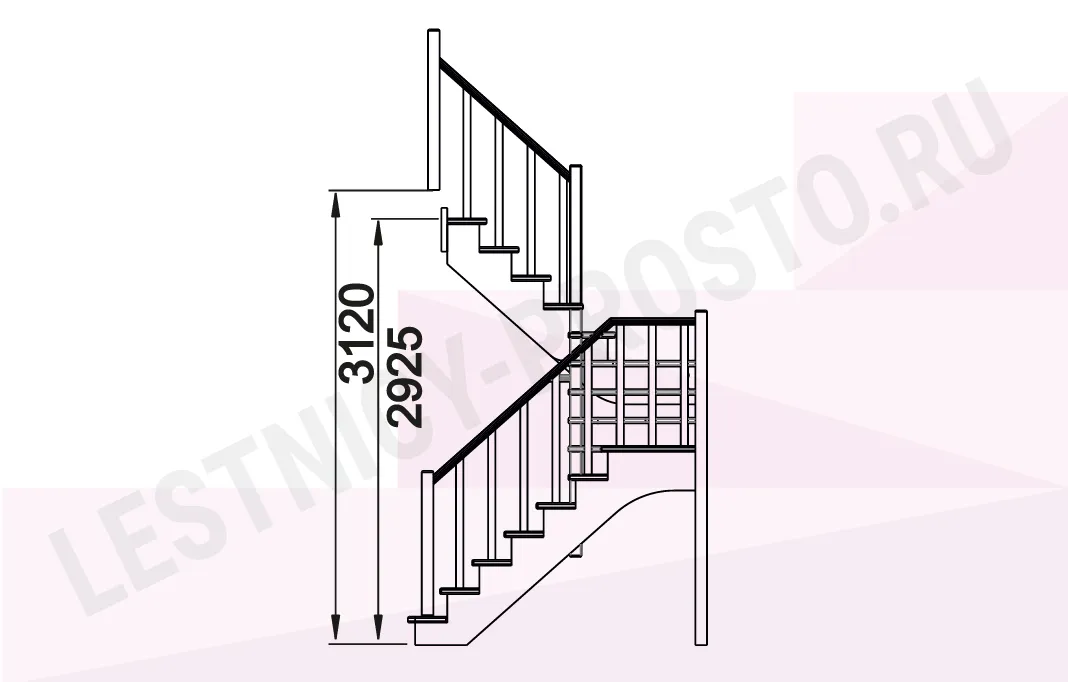 Ограждение у лестницы с обеих сторон (снизу до поворота)