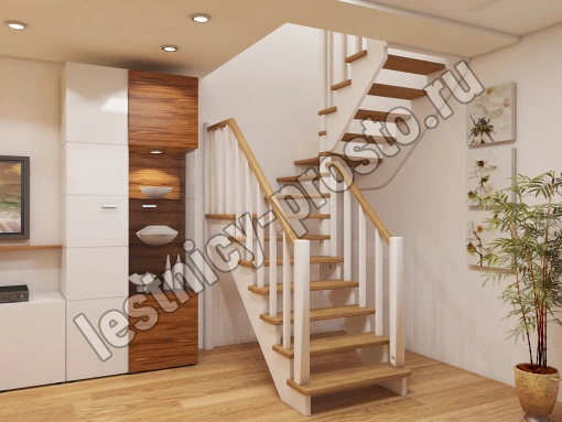 Ступени и поручень лестницы изготовлены из ясеня, остальные элементы из сосны.