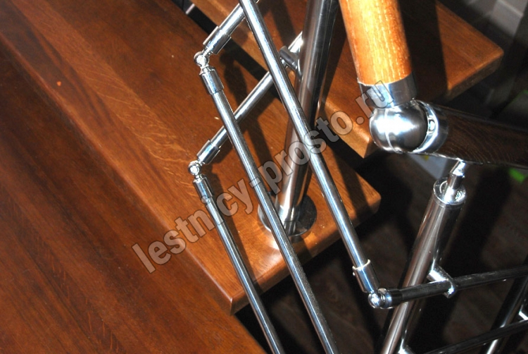Стойки диаметром 38 мм, и ригели из нержавеющей стали.