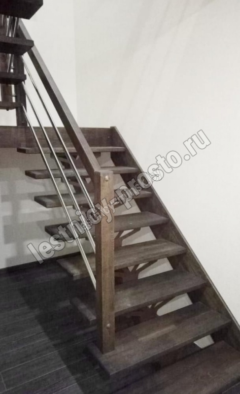 В комплекте: 3 прямых деревянных столба без какого-либо покрытия и профильный поручень без покрытия, комплект из 3 ригелей из стали (окрашены в цвет каркаса или хром по желанию) диаметром 12 мм. , необходимая фурнитура.