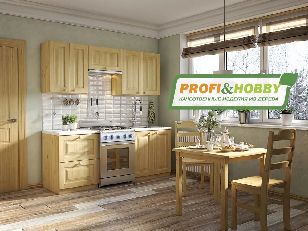 Небольшой кухонный гарнитур из 100% массива сосны шириной всего 2 и высотой 2,32 метра (верхние шкафы 90 см). Один из самых распространенных проектов кухни, который подойдёт для небольшой квартиры, загородного дома, гостиницы или хостела. Цвет на выбор - 27 вариантов (при заказе кухни в нашем интернет магазине просьба указывать название цвета в комментариях).