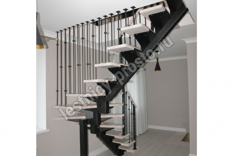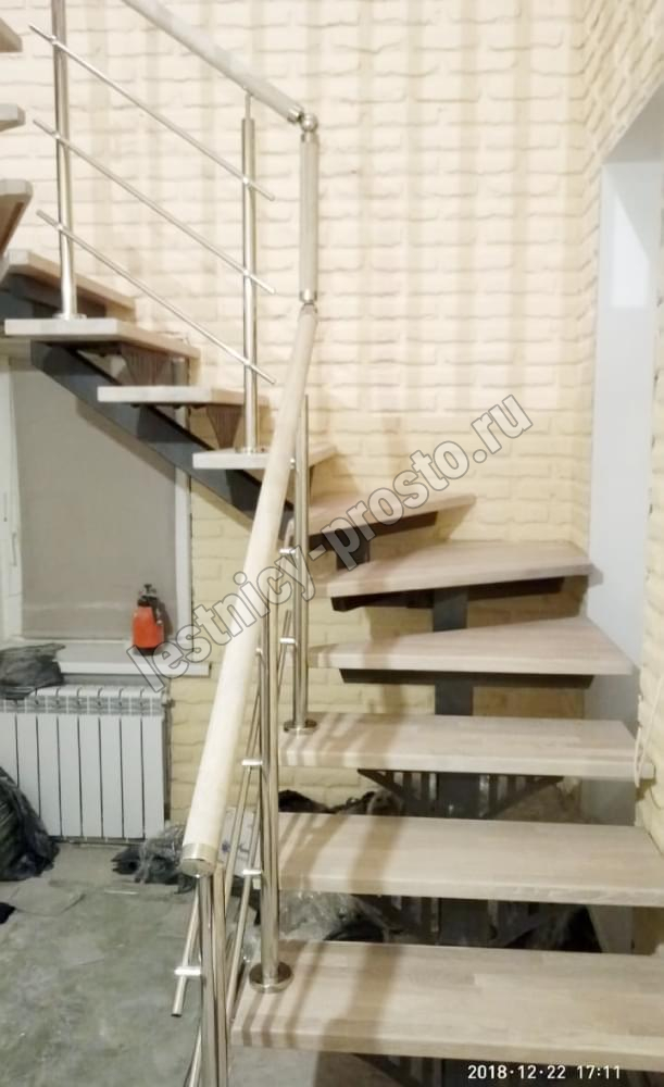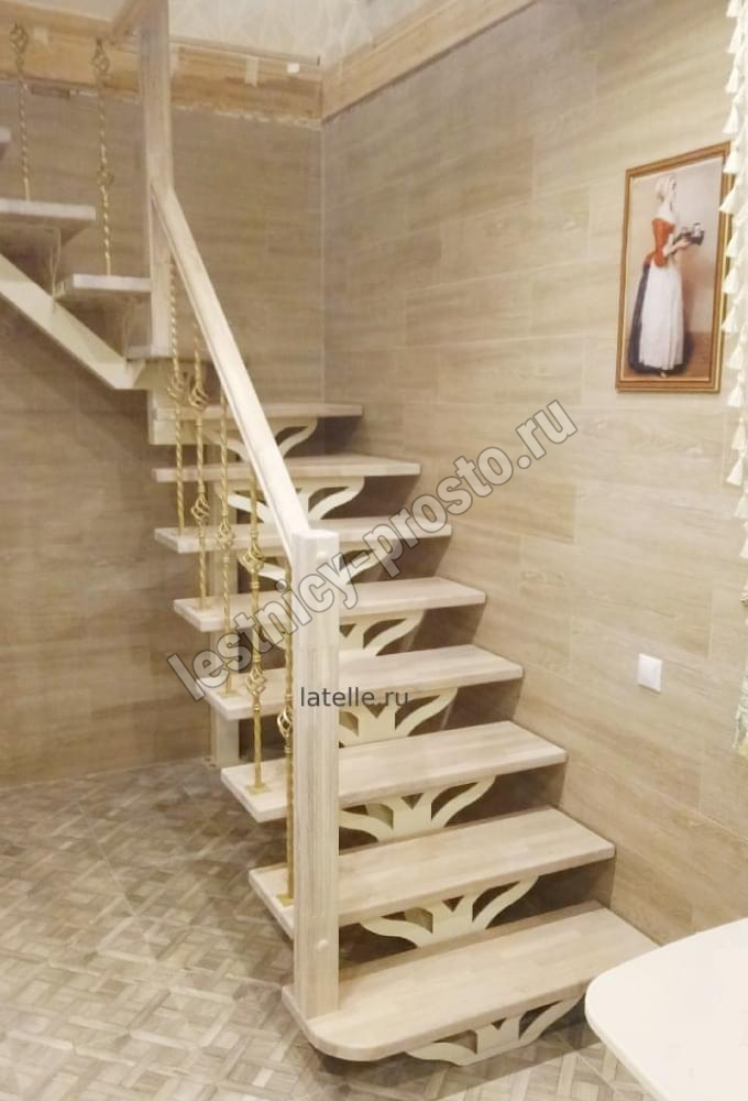 Лестница PROSTO MONO Г-образная h225 см, ступени лиственница