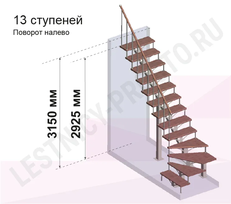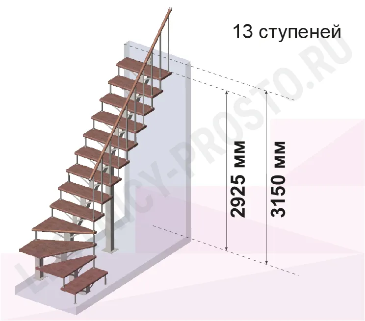 Лестница PROSTO MONO Г-образная h315 см, ступени бук
