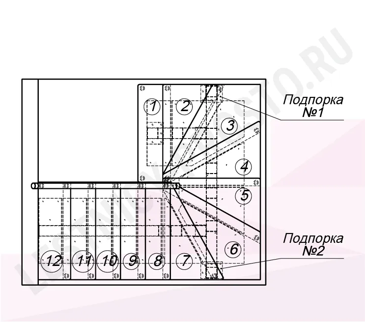 1. Верхняя ступень устанавливается вровень с уровнем верхнего этажа