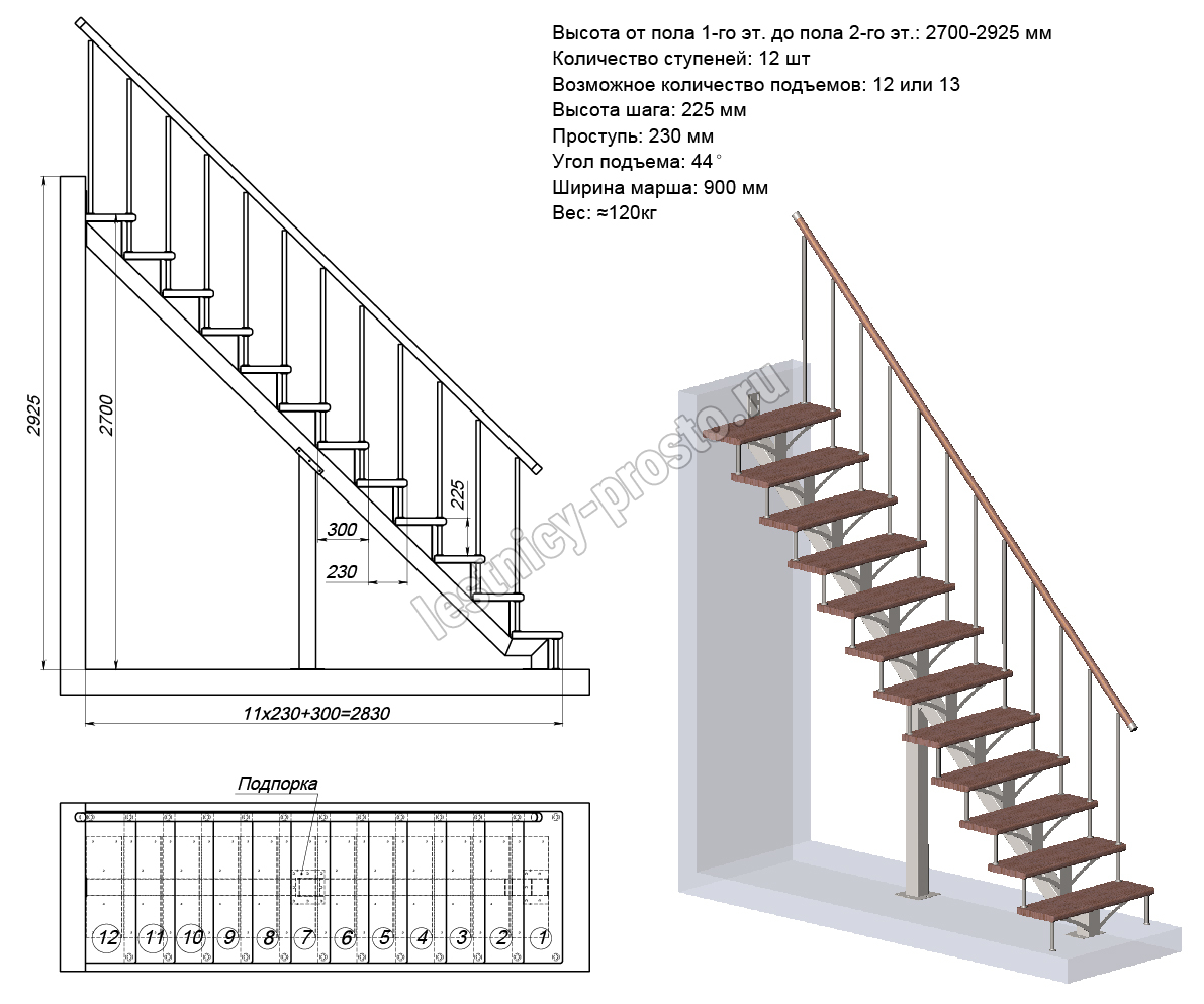 Высота лестницы 2700 - 2925 мм