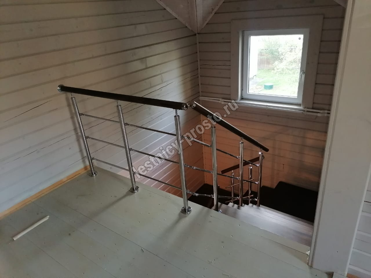 Ступени лестницы выполнены из лиственницы без какого-либо покрытия.