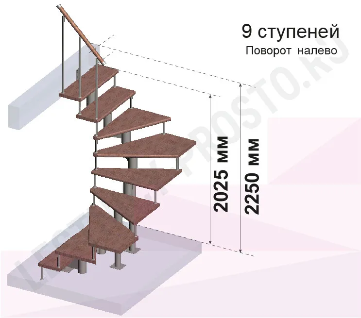 Высота лестницы 2025 - 2250 (9 ступеней) мм