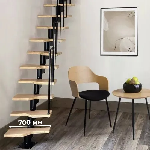 Лестница Prosto Urban Black гусиный шаг 700 мм, h180-264 см (10 ступеней) берёза мультиплекс