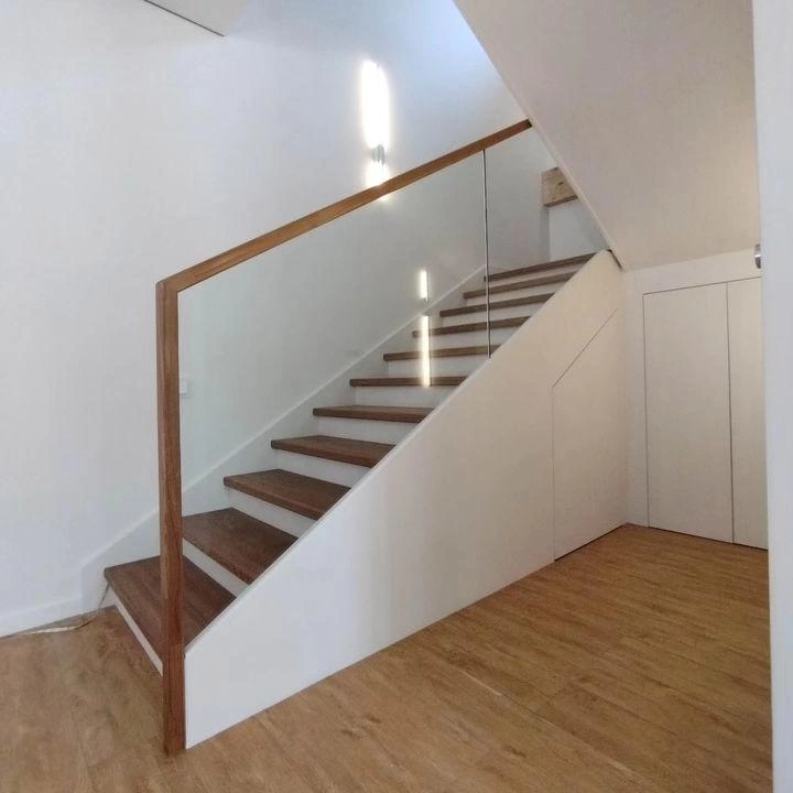 соответствует картинке, но вы не ограничены в его выборе. Лестницу можно приобрести и без ограждения, и с любым другим. Устанавливать на такую лестницу можно почти всё, начиная от классических деревянных балясин и заканчивая эксклюзивными коваными изделиями.