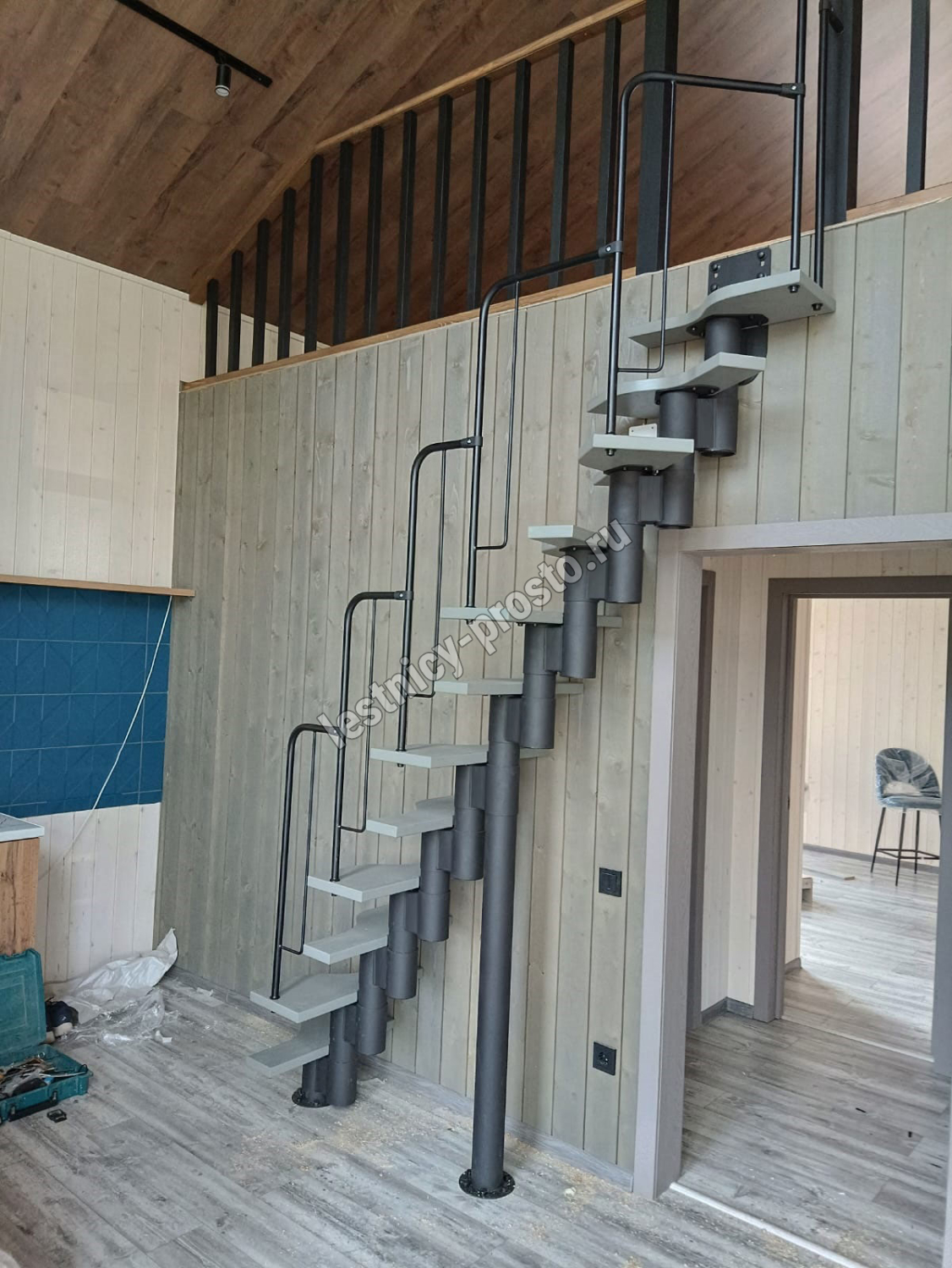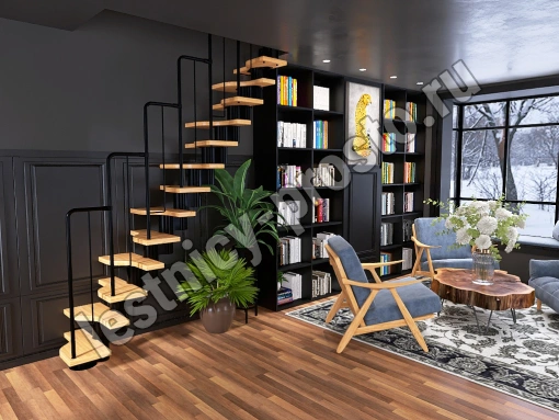 Лестница Prosto Urban Black гусиный шаг 700 мм, h234-336 см (13 ступеней), берёза мультиплекс