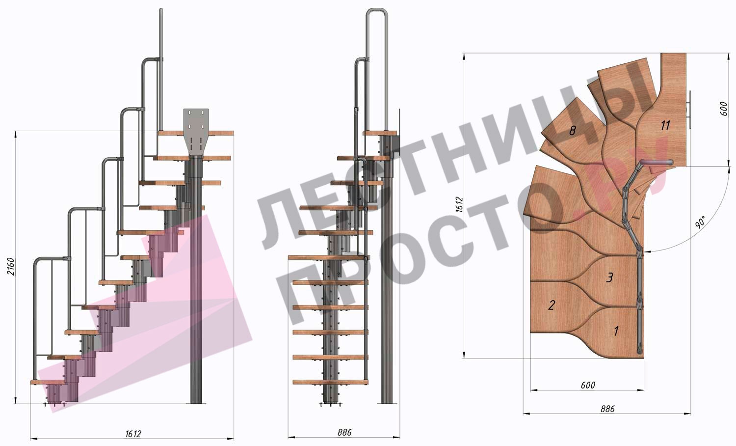 У лестницы  4 вариантов размера