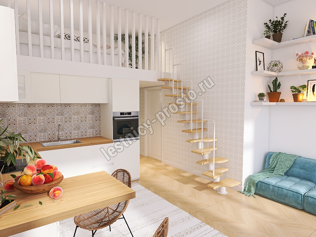 Лестница Prosto Urban White гусиный шаг 600 мм, h216-312 см (12 ступеней), дуб