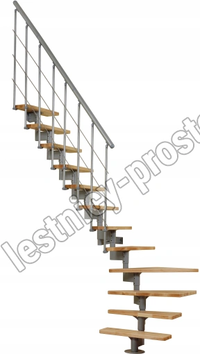 ATRIUM DIXI PLUS - это современная и удобная лестница, занимающая сравнительно мало места. В набор входят 11 конструктивных элементов и 11 ступеней из массивного лакированного дерева (8 прямых ступеней и 3 поворотные ступени). Есть возможность регулировать высоту ступеней. В комплект входят перила с вертикальными стойками и горизонтальными перегородками.