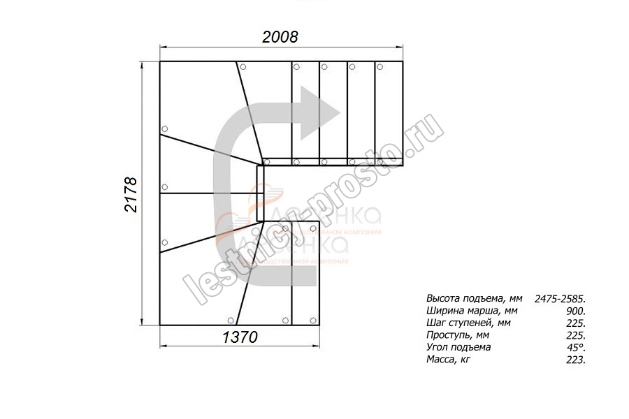 Модульная лестница Спринт 225 2475-2585, Серый, Бук, Крашеная