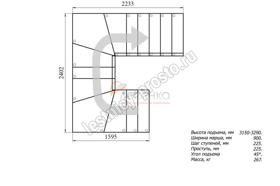 Модульная лестница Спринт 225 3150-3290, Черный, Бук, Крашеная