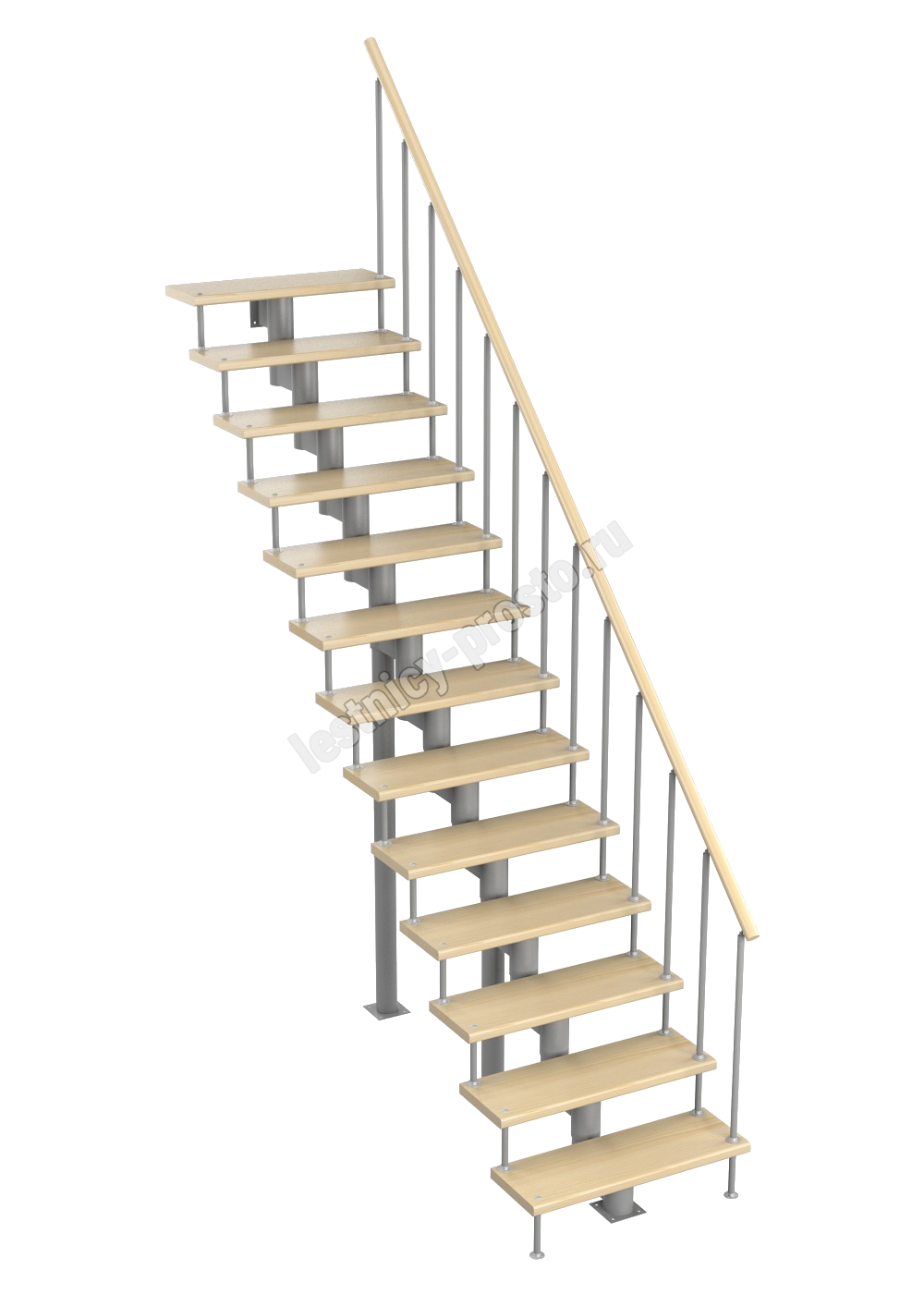 Модульная лестница Стандарт 2925-3055, Черный, Сосна, Нержавеющая сталь