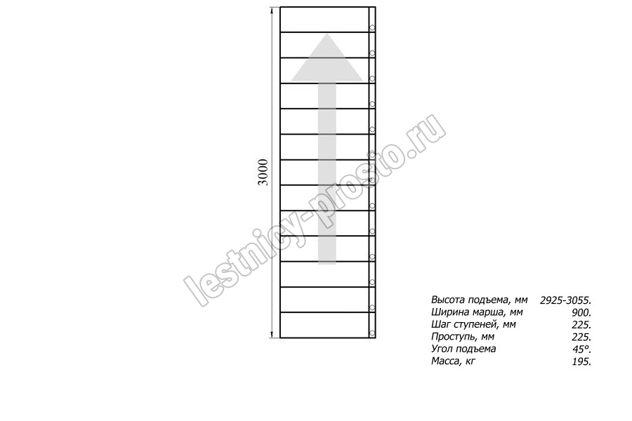 Модульная лестница Стандарт 2925-3055, Серый, Лиственница, Нержавеющая сталь