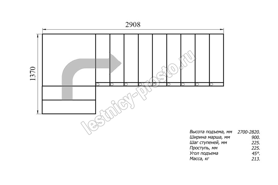 Высота лестницы 2700 - 2820 мм