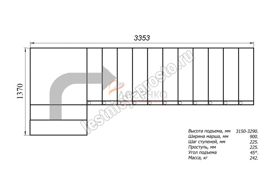 Высота лестницы 3150 - 3290 мм