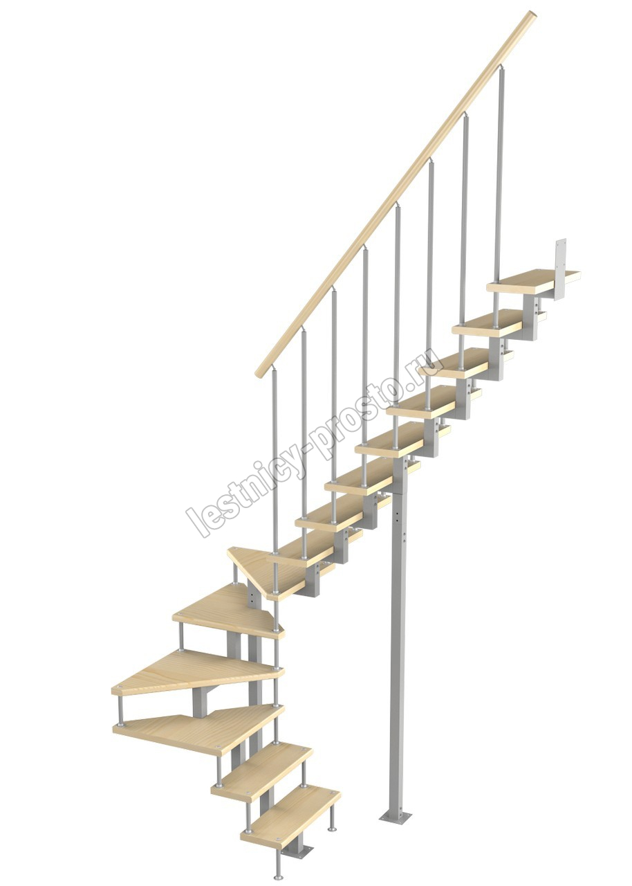Модульная малогабаритная лестница Эксклюзив 3150-3375, Серый, Лиственница, Крашеная